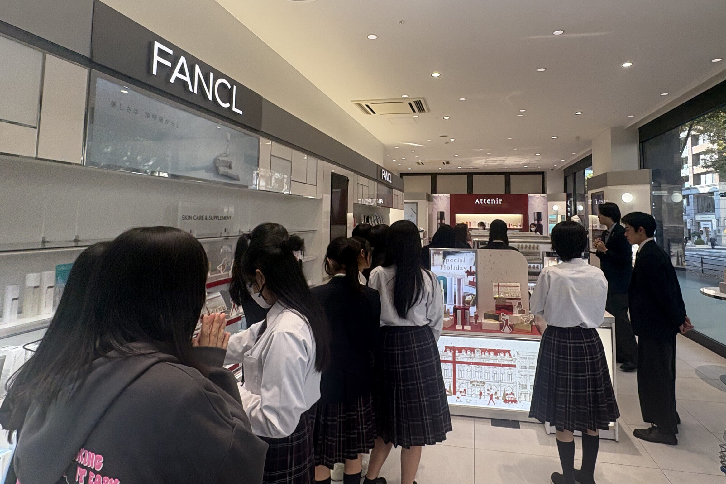 ファンケルの会社紹介・SDGs(環境)の取り組み・講師のキャリア紹介などを受講した後、環境に配慮した取り組みを実施しているファンケルの店舗見学が行われました。