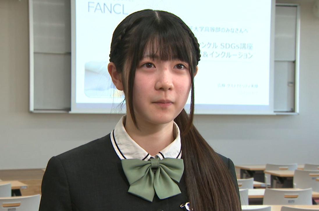 女性でもキャリアアップを目指せることがわかり、様々な企業で働いてみたいと思いました。一方で、女性は妊娠や出産といったライフイベントで休職をしなければならず、キャリアに影響に及ぼすことに驚きました。また、ファンケルでは女性と男性の管理職が半々だと聞き、男性も化粧品を使うことが増えていると思うので、これからの時代にとっても良いなと思いました。更年期の課題では、これまで親子で話をする機会がありませんでした。人に相談できないのは精神的に辛いと思います。ファンケルなどの企業が理解を深めてもらうために発信をしてくれることがとても心強いです。私も更年期について調べて、母と話してみようと思います。
