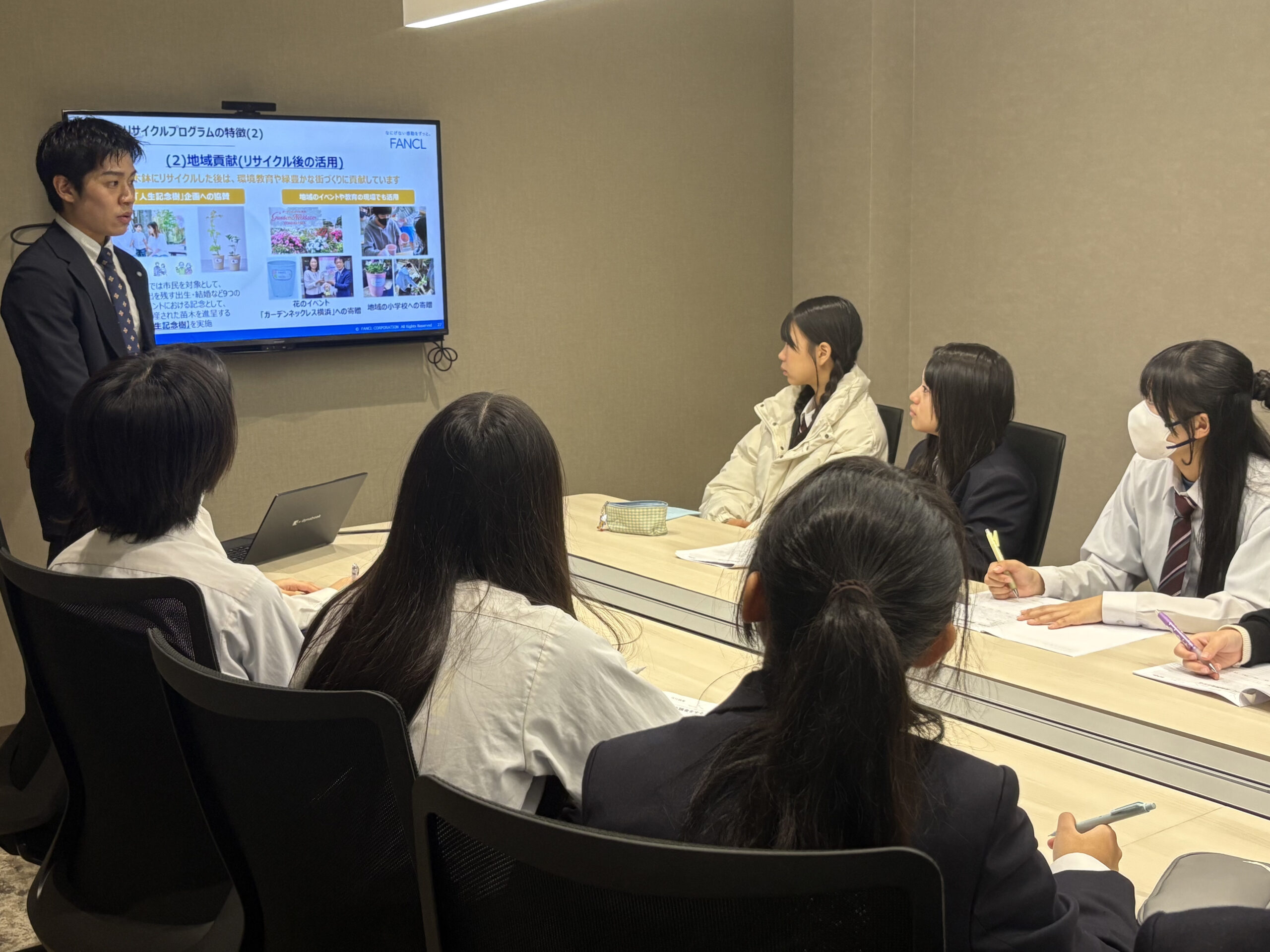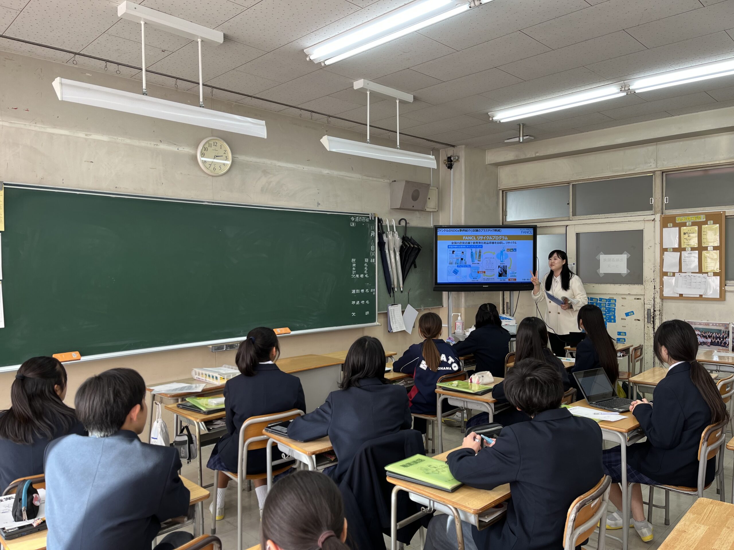 高校生の皆さんが将来、社会に出た際には活躍していこうという意識があり、日本がより良くなりそうな明るい未来を思い描けました。その一方で「女性は産休や育休でキャリアがストップしてしまうのが不安」という意見があり、ファンケルだけでなく社会全体で解決していかなければならない課題だと改めて思いました。女性特有の健康課題については、もともと興味をもって調べてくれていたのか、とても多くの意見が挙がり感動しました。「苦しんでいるかもしれないお母さんに寄り添いたい」「大親友みたいな関係になりたい」など、自分にできることを考える様子が特に印象に残っています。また、誰かが意見を発表する時に褒める生徒が多く、自信を持って発言できる環境だと感じたので、ぜひ今後も続けていってくれたら嬉しいです。