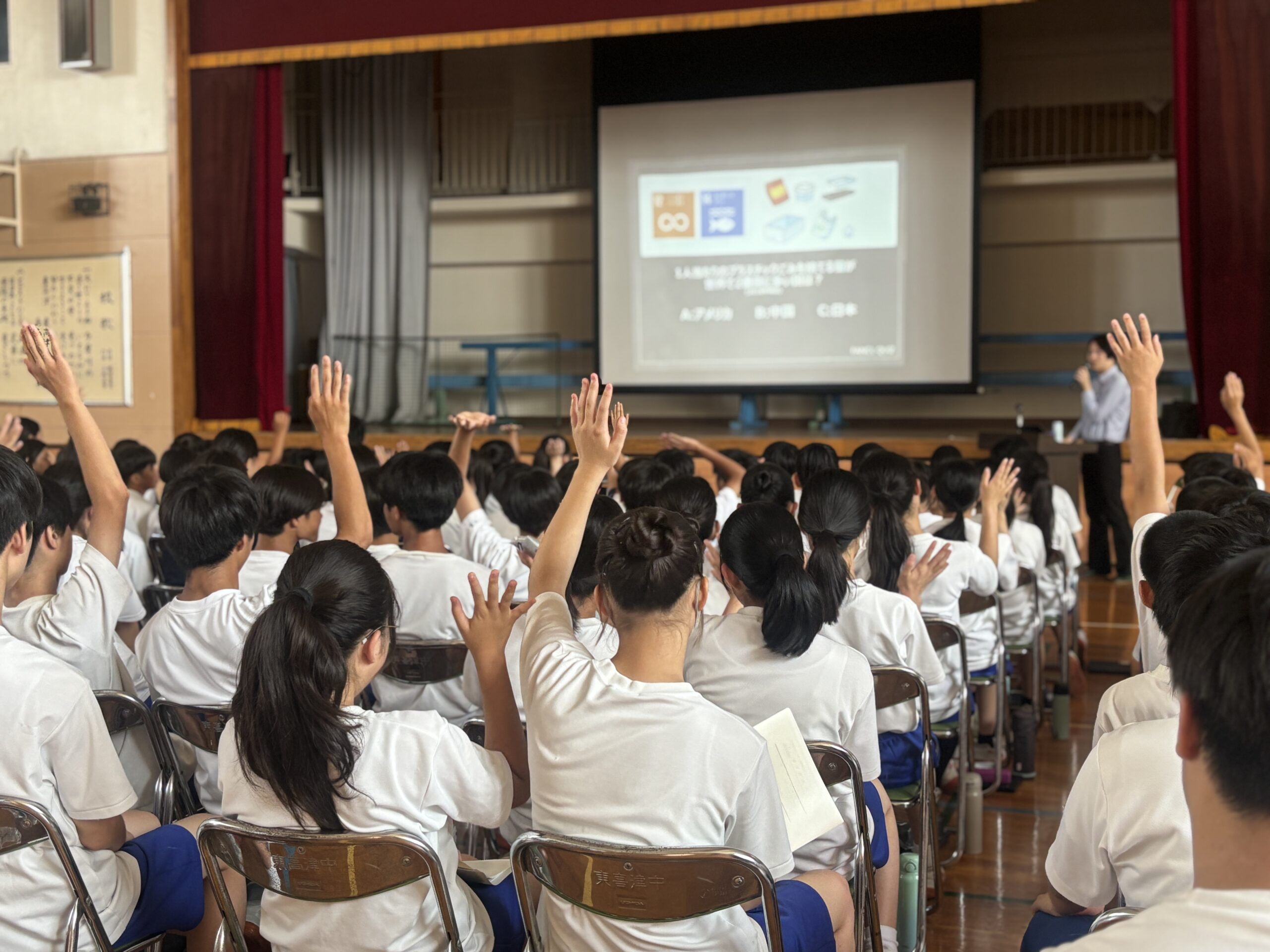 現在の2年生は「持続可能な社会に向けて、自分にできること」を3年間の総合のテーマとして学習を行っています。今回は、様々なアクションを調べる学習の一環として、ファンケルの取り組みについてお話していただきました。生徒たちは、企業が行っている取り組みを実際に知ることで、たくさんの人たちが様々な立場で自分にできる取り組みをしているんだと実感する良い機会になったと思います。ありがとうございました。