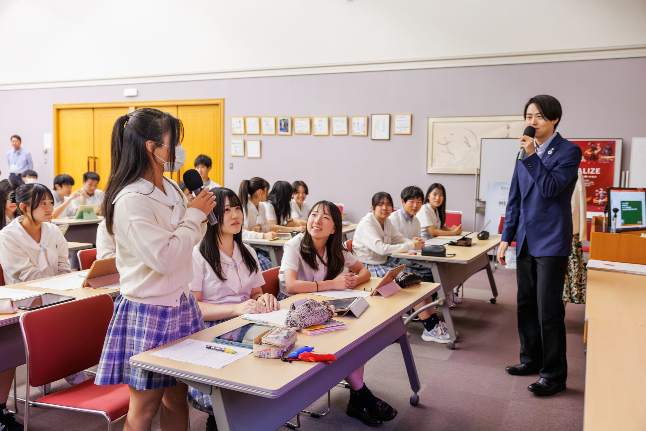 プラスチック問題に関して、身近な商品を例に掘り下げていただいたので、生徒にとってスッと入っていきやすい講座になったと思います。普段よりも積極的に発言をする生徒の姿が印象的でした。SDGsは教科書や授業で取り上げることもあったので生徒たちの認知はあると思っていましたが、講座で初めて知ることも多かったようです。企業の具体的な取り組みを聞く機会はなかなかないので、生徒が改めてSDGsに関心を示すきっかけになれば嬉しいです。